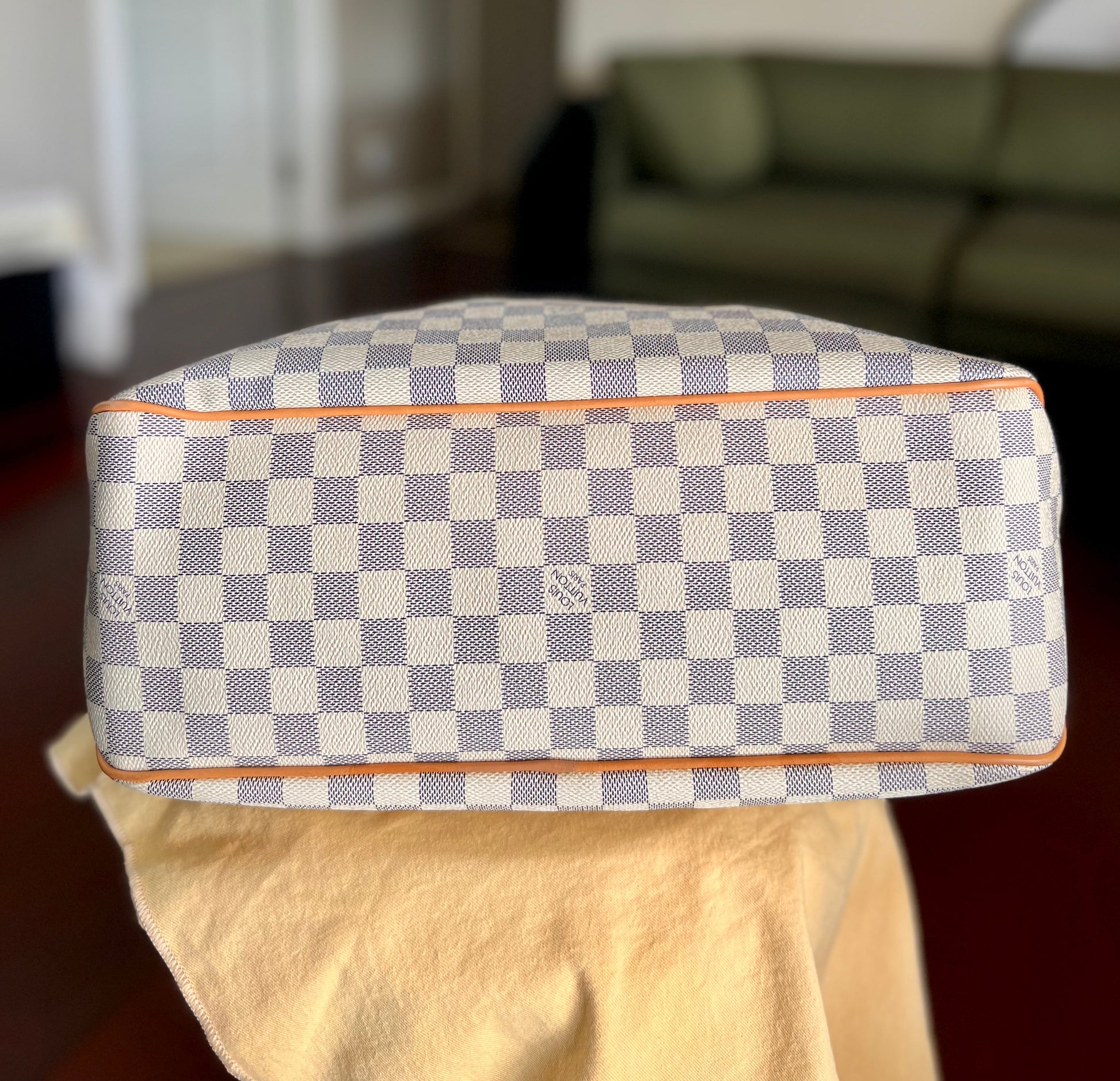 - Vachetta has beautiful light honey patina. A few marks on the side vachetta tab as shown.
