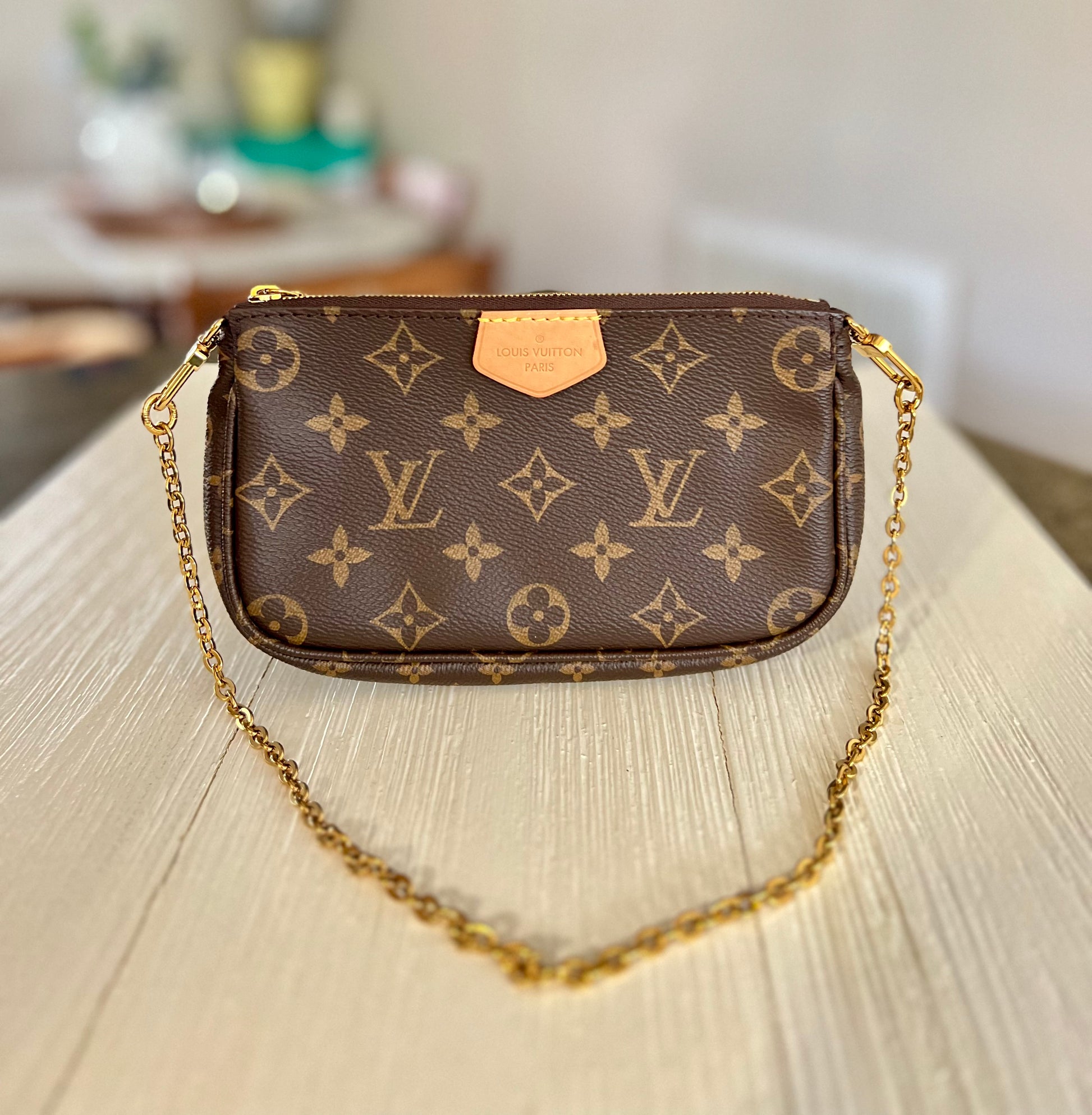 - Light patina on Vachetta tabs. One of them has a faint watermark.