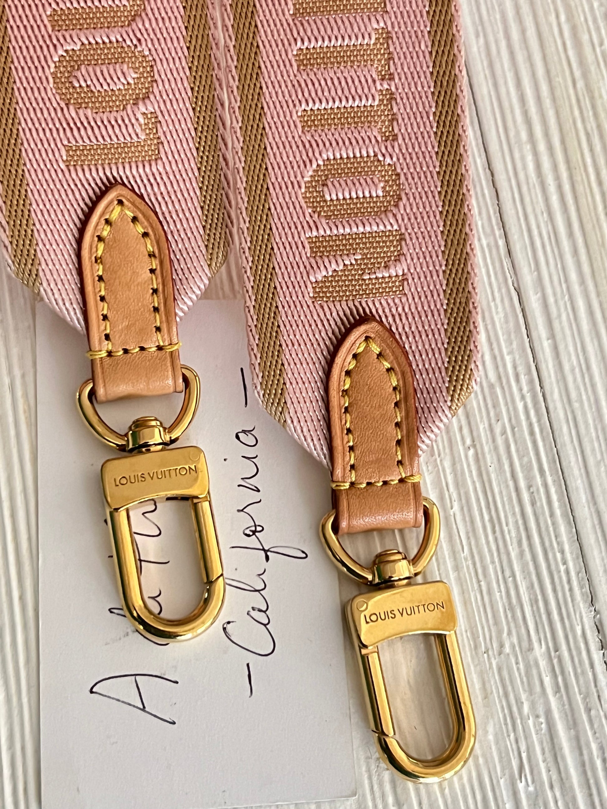 - Pink jacquard strap is excellent, with light patina on the Vachetta trims.